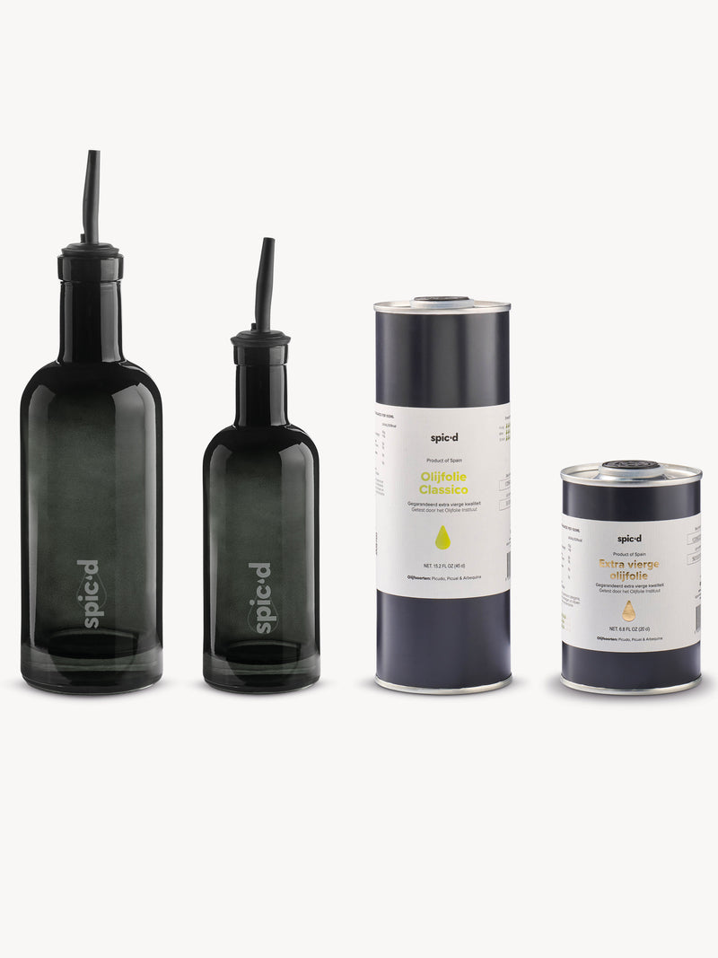 De lekkerste gerechten starten met de beste basis. Je kunt ze bijna iedere dag wel gebruiken; Extra vierge olijfolie (koud gebruik) & Olijfolie Classico (om in te bakken). Flessen voor het leven die je eindeloos kunt refillen. Heb je al een plekje gevonden op het aanrecht? Deze staan liever niet in de keukenkast.